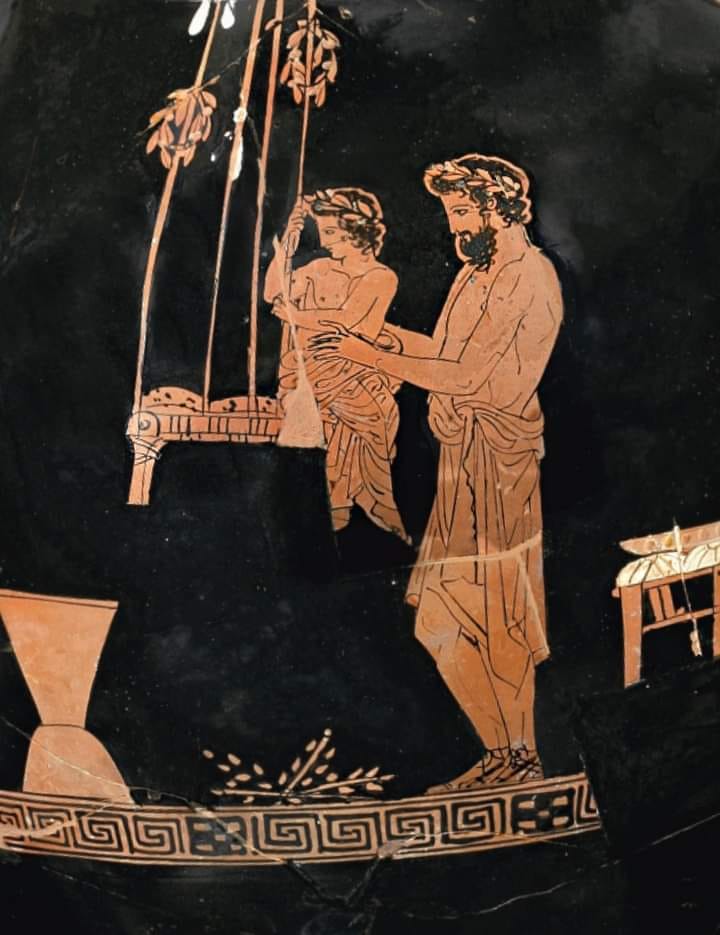 Η Αφροδίτη με την παντόφλα, (σανδάλι) απειλεί τον υιό της, Έρωτα...